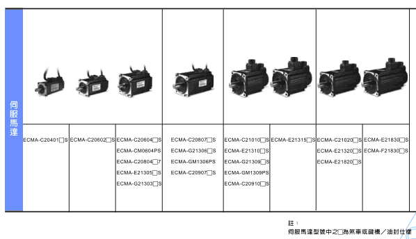 伺服馬達提供煞車、油封等配件,滿足不同應用之需求。